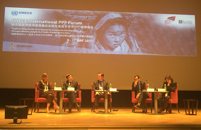 5月9-11日,聯(lián)合國歐洲經(jīng)濟委員會(簡稱聯(lián)合國歐經(jīng)會,UNECE)在香港城市大學(xué)成功召開第二屆PPP國際論壇,論壇主題為“通過以人為本及有效的PPP模式實踐聯(lián)合國2030年可持續(xù)發(fā)展議程”,內(nèi)容包括“一帶一路”倡議與以人為本PPP、聯(lián)合國可持續(xù)發(fā)展目標(SDGs)框架下的PPP標準與指導(dǎo)原則、各國PPP典型案例分享、八個平行分論壇、香港PPP經(jīng)驗及可持續(xù)和可恢復(fù)的城市等。論壇期間,中國國際工程咨詢公司(簡稱中咨公司)研究中心主任李開孟博士主持組織召開了城市軌道交通PPP模式平行論壇暨聯(lián)合國城市軌道交通PPP標準制定第二次專家組工作會議,并參與“尋找一帶一路倡議下的最佳PPP項目”及“可持續(xù)和可恢復(fù)的城市”兩個專題論壇的討論。來自歐洲、北美洲、南美洲、拉丁美洲、非洲、澳洲、亞洲的50多個國家和地區(qū)的政府部門、國際組織、工商企業(yè)、學(xué)術(shù)機構(gòu)等260余名注冊代表參加了本次論壇;香港鳳凰網(wǎng)(www.ifeng.com)進行了視頻直播,超過7萬人次在線收看了論壇直播。 聯(lián)合國歐經(jīng)會發(fā)起召開的PPP國際論壇,是聯(lián)合國系統(tǒng)針對PPP標準制定及研究交流的高層次專業(yè)論壇,受到世界各國政府官員、國際組織、專家學(xué)者及業(yè)界精英的高度關(guān)注。2016年3月30日至4月1日,聯(lián)合國首屆PPP論壇在瑞士日內(nèi)瓦萬國宮聯(lián)合國歐洲總部召開,中咨公司研究中心主任李開孟博士和教授級高工徐成彬向與會代表介紹了中國城市軌道交通PPP發(fā)展現(xiàn)狀和規(guī)劃以及PPP成功實踐案例,并申請制定城市軌道交通PPP國際標準。香港城市大學(xué)商學(xué)院提出并成功申辦了第二屆PPP論壇。 在本次PPP國際論壇開幕式上,聯(lián)合國歐經(jīng)會國際合作與綜合司副司長兼PPP中心主任杰夫瑞•漢密爾頓(Geoffrey Hamilton)、香港城市大學(xué)校長郭位(Way Kuo)分別代表論壇主辦方致開幕詞。出席論壇的嘉賓還有:中國中央政府駐香港聯(lián)絡(luò)辦副主任譚鐵牛、第十二屆全國政協(xié)常委兼世界貿(mào)易中心協(xié)會終身榮譽主席團成員伍淑清(Annie Wu)、香港特別行政區(qū)“一帶一路”專員蔡榮璧(Yvonne Choi)、亞洲基礎(chǔ)設(shè)施投資銀行副行長丹尼·亞歷山大(Danny Alexander)、世界銀行基礎(chǔ)設(shè)施融資高級專家馬克·吉布樂特(Mark Giblett)、聯(lián)合國歐經(jīng)委PPP專家委員會主席亞特·史密斯(Art Smith)、聯(lián)合國歐經(jīng)委PPP商業(yè)顧問委員會主席詹姆斯·斯圖爾特(James Stewart)等。 圖1 聯(lián)合國歐經(jīng)會國際合作與綜合司副司長兼PPP中心主任杰夫瑞•漢密爾頓(Geoffrey Hamilton)致開幕詞 在清華大學(xué)PPP研究中心共同主任王天義主持的“尋找‘一帶一路’倡議中的最佳PPP項目”(Seeking the Best PPP Projects for the OBOR Initiative)為主題的平行論壇中,中咨公司研究中心主任李開孟博士應(yīng)邀出席該主題的辯論交流。李開孟博士認為,國際社會討論“一帶一路”倡議下的最佳PPP項目,需要厘清三個核心問題,即我們需要什么樣的PPP項目、為什么需要這些項目和如何尋找這些PPP項目,并闡述了關(guān)于三代PPP劃分的思想。李開孟博士指出,英國PFI代表現(xiàn)代PPP核心理念的形成,并產(chǎn)生第一代PPP;以中國為代表的發(fā)展中國家,吸收法國特許經(jīng)營理念和PFI理念,進行吸收創(chuàng)新,正在創(chuàng)造第二代PPP,并作為經(jīng)濟發(fā)展的工具;聯(lián)合國倡導(dǎo)的以人為本PPP屬于第三代PPP,主要特征是追求人的發(fā)展以及資源環(huán)境社會的和諧和可持續(xù)性。歐洲創(chuàng)造了第一代PPP的概念和核心理念,中國目前正在主導(dǎo)實踐第二代PPP,聯(lián)合國正引導(dǎo)向第三代PPP過渡,而且中國是積極的推動者和參與者。 圖2 中咨公司研究中心主任李開孟博士(左起第五)在“尋找‘一帶一路’倡議中的最佳PPP項目”平行論壇中,闡述三代PPP劃分的思想 李開孟博士的觀點受到了與會專家的廣泛支持和贊同,開幕式當(dāng)天應(yīng)約接受了英國《BBC世界新聞》制片人兼主播Sharanjit Leyl記者的訪談,進一步闡述了“一帶一路”倡議下的中國PPP發(fā)展前景和中國企業(yè)境外投資項目遵循社會環(huán)境標準、履行國際義務(wù)等方面的政策規(guī)定及實踐情況。 圖3 英國《BBC世界新聞》制片人兼主播Sharanjit Leyl(中間)與中咨公司研究中心李開孟主任和徐成彬處長合影 本次論壇的最后一項辯論活動聚焦到“可持續(xù)與可恢復(fù)的城市”(Sustainable and Resilient Cities)這個主題,由聯(lián)合國歐經(jīng)會PPP高級咨詢顧問斯科特·瓦爾查克(Scott Walchak)主持,中咨公司研究中心主任李開孟再次應(yīng)邀出席該主題的辯論交流。李開孟博士結(jié)合中國PPP發(fā)展現(xiàn)狀,展望了可持續(xù)與可恢復(fù)的城市的未來實踐方向。根據(jù)中國投資項目在線審批和監(jiān)管平臺的統(tǒng)計數(shù)據(jù),中國傳統(tǒng)基礎(chǔ)設(shè)施領(lǐng)域入庫的PPP項目數(shù)量已經(jīng)達到15966個,其中市政污水處理、垃圾處理、海綿城市、城市地下綜合管廊、城市停車場等重大市政工程領(lǐng)域PPP項目達8838個,占PPP入庫項目數(shù)量的55%。李開孟博士指出,雖然經(jīng)濟類基礎(chǔ)設(shè)施PPP