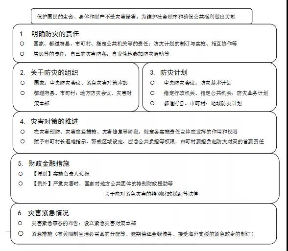 資料來源:日本內(nèi)閣府《防災白皮書》。 二 完善且行之有效的防災救災法律體系 日本有完善的防災救災法律體系,該法律體系有兩個特點。一是體系健全完善。日本早在1961年就頒布了《災害對策基本法》,該法是日本防災救災的基本大法。依據(jù)《災害對策基本法》,日本制訂了涵蓋防災規(guī)劃、災害緊急應對、災后重建和復興、災害管理組織等方面的一系列法律法規(guī)體系。各都道府縣及市町村均在此基礎上制訂《防災對策基本條例》等地方性法規(guī)。二是法律條款的動態(tài)修訂。日本政府在每次大災后都會總結防災救災的經(jīng)驗教訓,并不斷修訂和完善相關法律條款,補充制訂新的法律法規(guī)。例如,2011年3月11日發(fā)生的東日本9.0級強烈地震,引發(fā)了海嘯、核泄漏等一系列次生災害,人員傷亡和經(jīng)濟損失巨大。日本政府組織了跨學科、多部門參與的調(diào)查委員會和咨詢機構,對地震前后的國家減災政策與措施進行了深入的總結和反思,分別于2012年6月和2013年6月兩次修訂《災害對策基本法》,并通過了《大規(guī)模災害復興法》。
