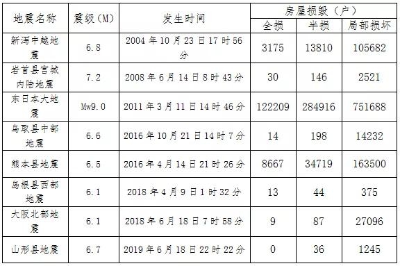 | 一、日本山形地震與我國長寧地震傷亡損失對比 2019年6月17日22時55分,我國四川省宜賓市長寧縣(北緯28.34度,東經(jīng)104.90度)發(fā)生了里氏6.0級地震,震源深度16千米。一天后的6月18日21時22分(北京時間),日本山形縣海面(北緯38.6度,東經(jīng)139.5度)發(fā)生了里氏6.7級地震,震源深度14千米。兩次地震前后相繼,都屬極淺型地震,且都發(fā)生在夜里,但兩次地震的傷亡損失卻差別很大。 根據(jù)中國國家應急管理部發(fā)布的災情信息,截至6月19日6時,長寧地震已造成16.8萬人受災,因災死亡13人,受傷199人,緊急轉移安置1.59萬人,初步調(diào)查有2.2萬戶房屋倒塌損壞。而根據(jù)日本內(nèi)閣府6月21日7時發(fā)布的災情消息,山形地震震區(qū)有32人受輕傷,1人受重傷,沒有發(fā)現(xiàn)因地震死亡人員,秋田縣、山形縣、新瀉縣共有145棟房屋受損,沒有重要設施損壞,沒有出現(xiàn)避難者。從地震發(fā)生時日本電視新聞的報道中可以看到,地震造成地面強烈晃動,但居民仍然圍坐在家中,沒有任何驚慌,屋頂瓦片震落,但房屋主體基本不受地震影響。 此次長寧地震震級為6.0,震源深度16千米,山形地震震級為6.7,震源深度14千米,山形地震釋放的能量大約是長寧地震的15倍,地震強度遠高于長寧地震,但是卻沒有出現(xiàn)因地震而發(fā)生的死亡、房屋倒塌和重大損失事件。同樣發(fā)生高強度的地震,日本的傷亡損失比我國小得多,這和日本行之有效的防災救災體系是分不開的。 二、日本地震防災救災體系的特點 一 房屋建筑抗震性能好 房屋建筑倒塌數(shù)量少是日本地震傷亡人數(shù)少的一個重要原因。1923年的關東大地震傷亡慘重,日本政府深刻反思,開始高度重視增強房屋的抗震性能,于1924年修訂《城市建筑物法》,規(guī)定了各類重要設施和民用建筑必須遵守的抗震標準。1950年出臺的《建筑基準法》對建筑的抗震標準提出了更嚴格的要求。此后,日本政府不斷從發(fā)生的大地震中總結經(jīng)驗教訓,分別于1981年、1995年、2006年對《建筑基準法》中的建筑物抗震條款進行重大修訂,不斷改進和提高建筑物抗震標準,并在配套的法規(guī)中詳細規(guī)定了實施層面的關鍵環(huán)節(jié),例如,一項建筑工程確定開工前,必須提交由具備一級建造師及以上資格的技術人員編制的建筑抗震能力報告書,報告書中要求根據(jù)不同的地震強度,計算不同的建筑結構在地震中受力的大小,并依此確定建筑物的梁柱位置、承重及鋼筋混凝土配比等。此外,日本自20世紀80年代修訂《建筑基準法》開始,重新檢查所有1981年以前完成建筑的抗震標準,抗震性能不足的建筑由政府補貼資金實施改造修繕。2006年,日本政府對所有高層公寓和飯店展開抗震強度檢查,以確認有無設計數(shù)據(jù)造假以及其他建筑質量問題。 在嚴格的法律體系和執(zhí)行措施的保障下,日本房屋建筑尤其是高層和超高層建筑大都應用基礎隔振技術,能夠抵御7級以上強烈地震,在地震中倒塌的危險性大大降低。近些年日本大地震的房屋損毀情況如表1所示。 表1 日本近年主要大地震房屋損毀情況表 注:表中數(shù)據(jù)來源于日本內(nèi)閣府歷年發(fā)布的《災情公報》 日本房屋建筑良好的抗震性能使得地震發(fā)生時可以最大程度地保證屋內(nèi)人員的人身安全,人員傷亡的數(shù)量大幅減少。如2008年6月14日8時43分發(fā)生的巖首縣內(nèi)陸地震,震源位于巖首縣南部,距離地表只有8km,震級為7.2級,震源淺、強度大,但這樣一次規(guī)模巨大的地震僅造成17人死亡,且大都是在室外因地震引發(fā)的山體滑坡、設施破壞、交通事故等遇難,沒有一個是因房屋倒塌致死的。 日本明治以后主要大地震的死亡及失蹤人口情況見下表2。 表2 日本明治以后主要大地震災害死亡及失蹤人數(shù)情況表