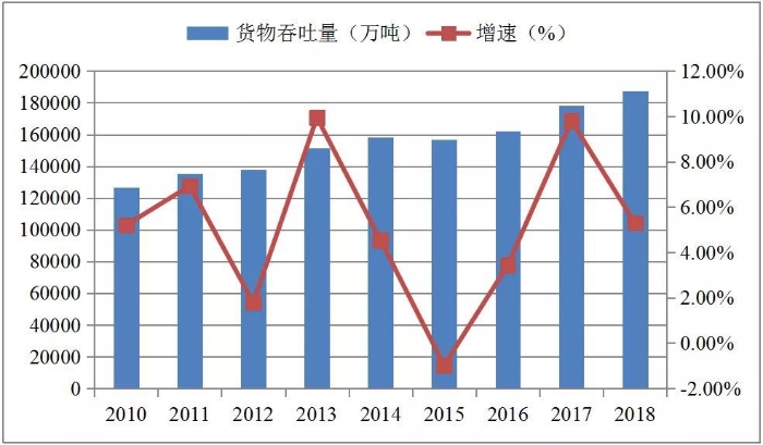 圖1-2 2010-2018年粵港澳大灣區(qū)港口貨物吞吐量及增速
