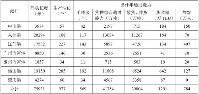 表1-1 2018年珠江水系段7市港口碼頭泊位情況表