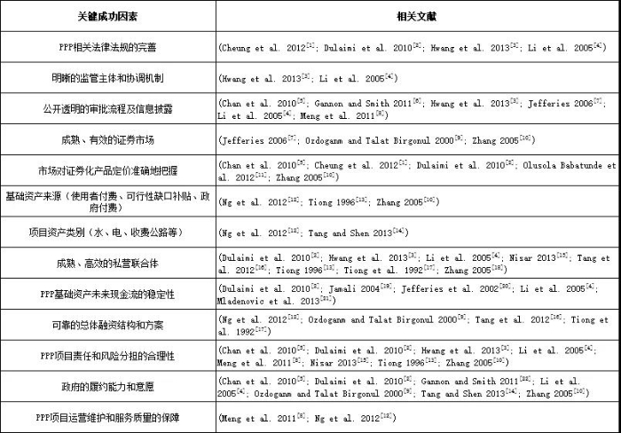 表2 PPP資產(chǎn)證券化關(guān)鍵成功因素