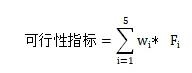 基于以上通過主成分分析獲得的5個主成分所確定的維度,可以建立可行性評估框架并應(yīng)用于融資決策過程中。具體而言,可以利用如下“可行性指標(biāo)”幫助進行初步評估和決策。這里假設(shè)分配給各主成分的權(quán)重為每個主成分的方差貢獻率與累計方差貢獻率的比重??尚行灾笜?biāo)的測算方法為: