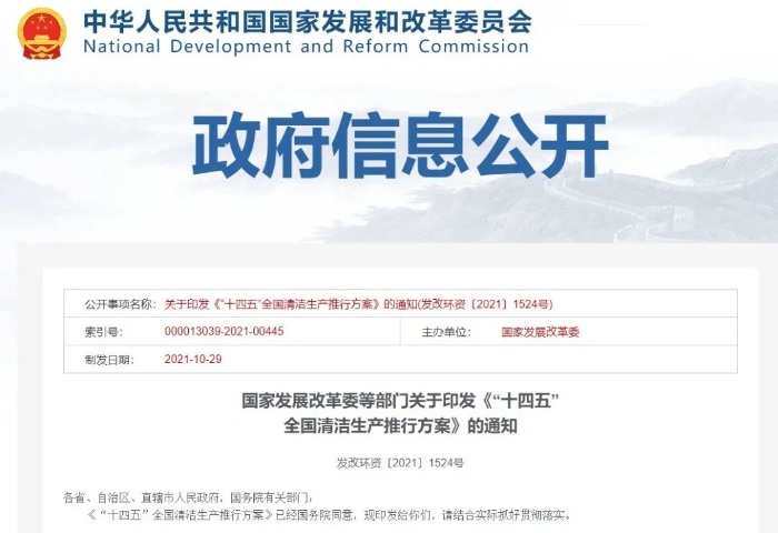 大力推行重點(diǎn)領(lǐng)域清潔生產(chǎn) 推動(dòng)實(shí)現(xiàn)減污降碳協(xié)同增效 —《“十四五”全國(guó)清潔生產(chǎn)推行方案》解讀 張英健 近日,經(jīng)國(guó)務(wù)院同意,國(guó)家發(fā)展改革委聯(lián)合生態(tài)環(huán)境部、工業(yè)和信息化部、科技部、財(cái)政部、住房和城鄉(xiāng)建設(shè)部、交通運(yùn)輸部、農(nóng)業(yè)農(nóng)村部、商務(wù)部、市場(chǎng)監(jiān)管總局印發(fā)《“十四五”全國(guó)清潔生產(chǎn)推行方案》(發(fā)改環(huán)資〔2021〕1524號(hào),以下簡(jiǎn)稱《方案》),明確了“十四五”期間我國(guó)推行清潔生產(chǎn)的發(fā)展目標(biāo)、工作思路、主要任務(wù)等,指明了“十四五”清潔生產(chǎn)發(fā)展路徑,為各地有序推行清潔生產(chǎn)工作提供了重要依據(jù),對(duì)實(shí)現(xiàn)減污降碳協(xié)同增效,加快形成綠色生產(chǎn)方式、促進(jìn)經(jīng)濟(jì)社會(huì)發(fā)展全面綠色轉(zhuǎn)型,實(shí)現(xiàn)碳達(dá)峰、碳中和目標(biāo)具有十分重要的意義。 一、《方案》準(zhǔn)確把握新形勢(shì)新要求,開創(chuàng)清潔生產(chǎn)工作新局面 “十四五”時(shí)期,我國(guó)生態(tài)文明建設(shè)進(jìn)入了以降碳為重點(diǎn)戰(zhàn)略方向、推動(dòng)減污降碳協(xié)同增效、促進(jìn)經(jīng)濟(jì)社會(huì)發(fā)展全面綠色轉(zhuǎn)型、實(shí)現(xiàn)生態(tài)環(huán)境質(zhì)量改善由量變到質(zhì)變的關(guān)鍵時(shí)期。2021年3月15日中央財(cái)經(jīng)委員會(huì)第九次會(huì)議強(qiáng)調(diào)“要實(shí)施重點(diǎn)行業(yè)領(lǐng)域減污降碳行動(dòng)”,“減污降碳協(xié)同增效”。清潔生產(chǎn)作為落實(shí)節(jié)約資源和保護(hù)環(huán)境基本國(guó)策的重要舉措,有效推動(dòng)了污染防治從末端治理向全過(guò)程控制轉(zhuǎn)變,是實(shí)現(xiàn)減污降碳協(xié)同增效的有效途徑?!斗桨浮窚?zhǔn)確把握新發(fā)展形勢(shì)和生態(tài)環(huán)境工作新要求,提出未來(lái)五年清潔生產(chǎn)發(fā)展部署,對(duì)開創(chuàng)“十四五”生態(tài)環(huán)境高水平保護(hù)新格局具有重要意義。 一是把發(fā)展清潔生產(chǎn)作為推動(dòng)生態(tài)環(huán)境保護(hù)工作的重要舉措。當(dāng)前我國(guó)生態(tài)文明建設(shè)仍處于壓力疊加、負(fù)重前行的關(guān)鍵期,保護(hù)與發(fā)展長(zhǎng)期矛盾和短期問(wèn)題交織,生態(tài)環(huán)境保護(hù)結(jié)構(gòu)性、根源性、趨勢(shì)性壓力總體上尚未根本緩解。清潔生產(chǎn)作為扭轉(zhuǎn)粗放發(fā)展方式、源頭改善環(huán)境質(zhì)量的重要措施,對(duì)于實(shí)現(xiàn)生態(tài)環(huán)境高水平保護(hù)將發(fā)揮重要的作用?!斗桨浮穼?duì)標(biāo)高質(zhì)量發(fā)展要求,貫徹源頭預(yù)防、過(guò)程控制和末端治理的全過(guò)程控制理念,部署突出抓好工業(yè)清潔生產(chǎn)、加快推行農(nóng)業(yè)清潔生產(chǎn)、積極推動(dòng)其他領(lǐng)域清潔生產(chǎn)、加強(qiáng)清潔生產(chǎn)科技創(chuàng)新和產(chǎn)業(yè)培育、深化清潔生產(chǎn)推行模式創(chuàng)新等重要措施,從清潔能源、產(chǎn)品綠色設(shè)計(jì)、清潔生產(chǎn)改造、清潔生產(chǎn)產(chǎn)業(yè)培育等全方位提出工作指引,有力并有效地促進(jìn)生態(tài)環(huán)境質(zhì)量的全面改善。 圖片 二是把發(fā)展清潔生產(chǎn)作為實(shí)現(xiàn)減污降碳協(xié)同增效的重要手段。清潔生產(chǎn)通過(guò)各行業(yè)各領(lǐng)域不斷改進(jìn)設(shè)計(jì)、使用清潔能源原料、升級(jí)工藝技術(shù)與設(shè)備、改善管理、強(qiáng)化資源能源綜合利用等方式從源頭削減污染,提高資源能源利用效率,減少或者避免生產(chǎn)、服務(wù)和產(chǎn)品使用過(guò)程中污染物和溫室氣體的產(chǎn)生和排放,是當(dāng)前形勢(shì)下減污降碳協(xié)同增效的有力抓手?!斗桨浮飞钊胴瀼芈鋵?shí)習(xí)近平生態(tài)文明思想,強(qiáng)化清潔生產(chǎn)發(fā)展路徑,著力實(shí)現(xiàn)資源能源高效利用、污染及碳排放有效降低、多措并舉協(xié)同增效。首先是深化源頭治理,抓好重點(diǎn)領(lǐng)域清潔生產(chǎn)。以優(yōu)化工業(yè)結(jié)構(gòu)、轉(zhuǎn)變能源消費(fèi)結(jié)構(gòu)作為主要途徑,嚴(yán)格控制“兩高”項(xiàng)目上馬,加快清潔能源和無(wú)害化原料替代,實(shí)現(xiàn)產(chǎn)業(yè)結(jié)構(gòu)高端化、能源結(jié)構(gòu)清潔低碳化。其次是突出精準(zhǔn)治污,打破末端治理的傳統(tǒng)單一模式。跳出“先污染,后治理”的怪圈,要從環(huán)境的末端治理向源頭減量、過(guò)程防控轉(zhuǎn)變,加強(qiáng)推行綠色設(shè)計(jì)、綠色生產(chǎn)、綠色建設(shè)、綠色消費(fèi)等,確保高效、綠色、低碳、安全的可持續(xù)發(fā)展模式。最后是堅(jiān)持創(chuàng)新發(fā)展,著力提升清潔生產(chǎn)科技和模式創(chuàng)新水平。加強(qiáng)構(gòu)建市場(chǎng)導(dǎo)向的清潔生產(chǎn)技術(shù)和模式創(chuàng)新體系,發(fā)展壯大清潔生產(chǎn)產(chǎn)業(yè)和服務(wù)業(yè),探索清潔生產(chǎn)管理和區(qū)域協(xié)同創(chuàng)新模式。在“十四五”這一關(guān)鍵時(shí)期,《方案》作為我國(guó)清潔生產(c
