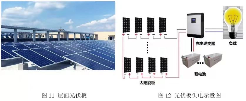 結(jié)合該項(xiàng)目,在屋面鋪設(shè)太陽(yáng)能光伏板,采用多晶硅太陽(yáng)能電池組件,組件之間及組件與逆變器之間用光伏專用電纜穿管敷設(shè)。還可以增加儲(chǔ)能罐,如果夏天光伏發(fā)電量有多余的,可以儲(chǔ)存在儲(chǔ)能罐里待日后使用。在建筑本身節(jié)能的情況下最大限度地使用綠電,減少電網(wǎng)的用電量,同時(shí)也降低了建筑運(yùn)行的碳排放。