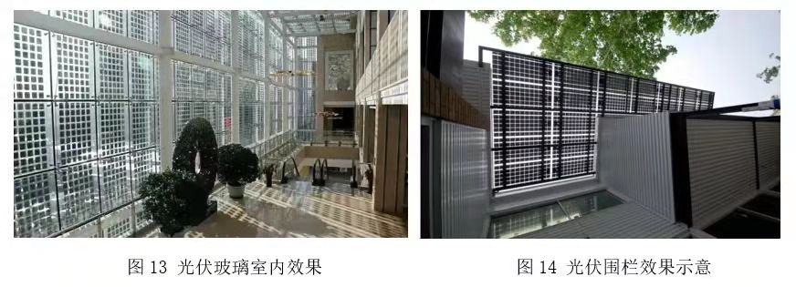 結(jié)合該項(xiàng)目立面效果,可以在外墻局部采用光伏構(gòu)件。光伏構(gòu)件可以采用光伏玻璃、光伏圍欄、光伏百葉等方式,其特有的色彩、幾何形和肌理等美學(xué)特性都能影響建筑的整體外觀美感。在陽(yáng)光的照射下,光伏構(gòu)件的位置和種類會(huì)產(chǎn)生不同的光影、顏色和透明度,可以為建筑營(yíng)造出別樣的風(fēng)格和美感。兼顧美學(xué)的同時(shí),光伏構(gòu)件與建筑物同時(shí)設(shè)計(jì)、同時(shí)施工和安裝,為建筑自身提供電力,白天儲(chǔ)存起來(lái),用于晚間夜景照明。