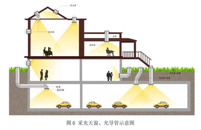超低能耗建筑宜采用高效節(jié)能光源和智能化照明控制系統(tǒng),按需照明,降低照明能耗。例如公共區(qū)域的照明應(yīng)采取聲光控制、定時(shí)控制及紅外感應(yīng)控制等節(jié)能措施。地下空間可以設(shè)置采光井、光導(dǎo)管(圖6、圖7)或者利用下沉式廣場(chǎng)等措施提供天然采光。