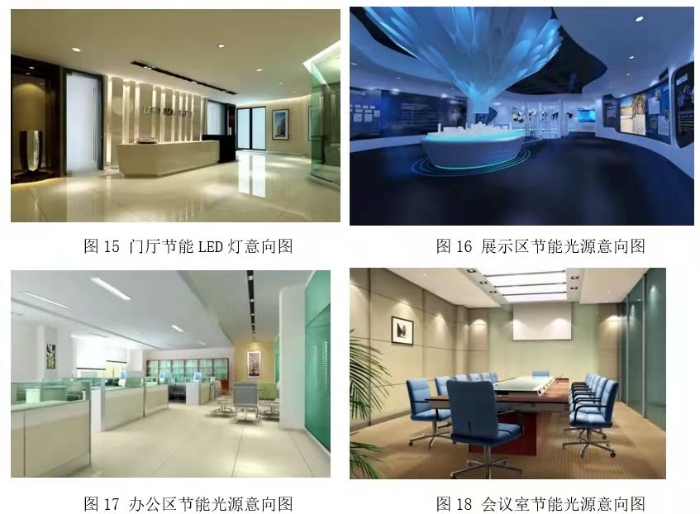 該項(xiàng)目采用智能化照明控制系統(tǒng),按需照明,降低照明能耗。光源均選高效LED節(jié)能光源和燈具,比普通節(jié)能燈節(jié)能50%以上。走道、樓梯間等公共區(qū)域的照明應(yīng)采取聲光控制、定時(shí)控制等節(jié)能措施。門(mén)廳、休息廳、辦公室等采用 LED 等高效燈具,并采用分區(qū)、分組控制措施。