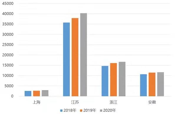 長三角戰(zhàn)略性新興產(chǎn)業(yè)加速成長。2020年,上海工業(yè)戰(zhàn)略性新興產(chǎn)業(yè)總產(chǎn)值占規(guī)模以上工業(yè)總產(chǎn)值比重提高到40%;江蘇戰(zhàn)略性新興產(chǎn)業(yè)產(chǎn)值增長11.0%,占規(guī)模以上工業(yè)總產(chǎn)值比重達(dá)37.8%,比上年提高5.0個(gè)百分點(diǎn);浙江戰(zhàn)略性新興產(chǎn)業(yè)產(chǎn)值增長10.2%,占規(guī)模以上工業(yè)總產(chǎn)值的33.1%;安徽戰(zhàn)略性新興產(chǎn)業(yè)產(chǎn)值增長18%,七大戰(zhàn)略性新興產(chǎn)業(yè)增幅較快。