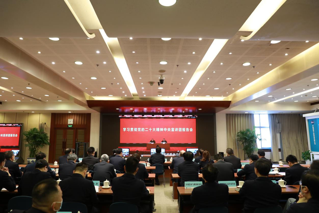 按照黨中央統(tǒng)一安排,11月8日,學習貫徹黨的二十大精神中央宣講團報告會在國資國企系統(tǒng)舉行。中央宣講團成員、中央政策研究室副主任田培炎作了宣講報告。國務(wù)院國資委黨委書記、主任郝鵬主持報告會。報告會采取現(xiàn)場和視頻相結(jié)合的方式舉行。中咨公司總部及所屬企業(yè)開設(shè)10個分會場同步聆聽宣講。