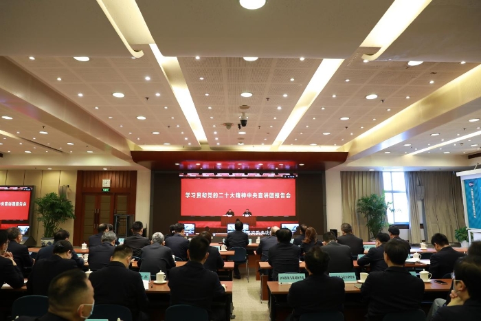 郝鵬在主持報告會時指出,國資國企系統(tǒng)要認真學習領(lǐng)會輔導(dǎo)報告,切實把思想和行動統(tǒng)一到黨的二十大精神上來,深刻領(lǐng)悟“兩個確立”的決定性意義,堅決做到“兩個維護”。要強化政治責任,確保思想認識、組織領(lǐng)導(dǎo)、督促推動到位,結(jié)合學習領(lǐng)會黨的二十大關(guān)于國資國企工作新部署新要求,持續(xù)興起學習宣傳貫徹熱潮。要對標中央宣講要求,廣泛宣傳宣講,精心組織學習培訓(xùn)、集中宣講、宣傳引導(dǎo),讓干部職工聽得懂、能領(lǐng)會、可落實。要以學習宣傳貫徹黨的二十大精神為強大動力,抓好今年各項工作的圓滿收官,確保明年工作高質(zhì)量開局起步。