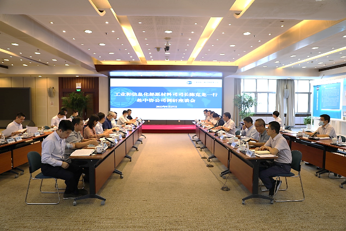 9月27日下午,工業(yè)和信息化部原材料司司長陳克龍、副司長馮猛一行到訪中咨公司,與公司黨委委員、副總經理竇皓,總工程師楊上明就進一步落實國家發(fā)展戰(zhàn)略,發(fā)揮中咨公司綜合性高端智庫優(yōu)勢,共同促進我國原材料行業(yè)高質量健康發(fā)展進行深入交流。