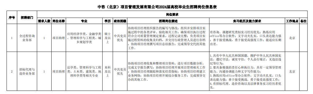 中咨(北京)項(xiàng)目管理發(fā)展有限公司招聘崗位信息