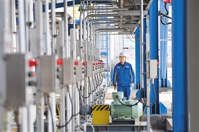 近年來,中國(guó)石油蘭州石化公司加大科技創(chuàng)新力度,大力增產(chǎn)高附加值產(chǎn)品,自主研發(fā)的丁腈橡膠、煉油催化劑等產(chǎn)能已躋身世界前列,創(chuàng)新驅(qū)動(dòng)和提質(zhì)增效能力顯著增強(qiáng)。圖為該公司橡膠運(yùn)行部丁腈二區(qū)域工藝技術(shù)負(fù)責(zé)人在進(jìn)行生產(chǎn)裝置日常巡檢。