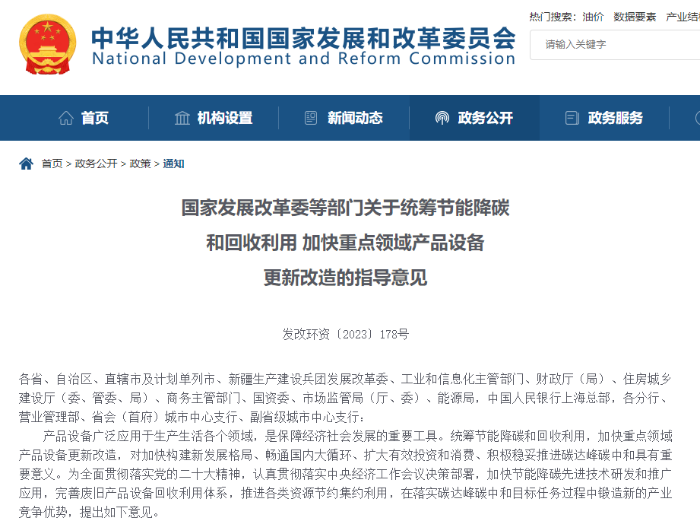 ——《關(guān)于統(tǒng)籌節(jié)能降碳和回收利用 加快重點(diǎn)領(lǐng)域產(chǎn)品設(shè)備更新改造的指導(dǎo)意見(jiàn)》解讀