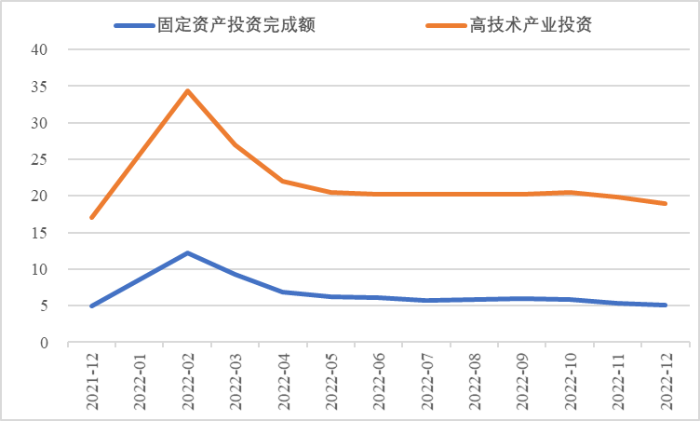2022年,面對復雜嚴峻的國際環(huán)境和國內疫情挑戰(zhàn),我國投資整體表現較強韌性,對穩(wěn)定經濟基本盤發(fā)揮了壓艙石作用?;A設施和部分制造業(yè)成為穩(wěn)投資的重點領域,中西部地區(qū)投資增長動能強勁。同時,制造業(yè)承壓加劇、房地產投資下行、地方債高壓、社融需求走弱等突出問題制約投資持續(xù)穩(wěn)定增長,穩(wěn)投資壓力仍然較大。做好2023年投資促進工作,關鍵是把擴大有效投資同優(yōu)化供給結構有機結合起來,持續(xù)擴大高技術產業(yè)投資,多舉措穩(wěn)定房地產投資,更好發(fā)揮政府投資的引導作用,充分釋放社會投資需求潛能。 一、固定資產投資整體運行情況 (一)整體投資韌性超出預期,民間投資呈下行趨勢 2022年1—12月,我國固定資產投資(不含農戶,下同)572138億元,同比增長5.1%。一季度投資增速達到9.3%的年內高點,上半年、前三季度分別降至6.1%、5.9%,年初投資增速較高的重要原因是2022年專項債部分限額提前下達等系列政策發(fā)揮效果,之后受國外地緣政治沖突、國內疫情多點散發(fā)等因素影響,投資增速有所下降,但降幅逐季收窄。一季度、上半年、前三季度、全年固定資產投資增速分別較同期國內生產總值增速高了4.5個、3.6個、2.9個和2.1個百分點,投資成為當前穩(wěn)定宏觀經濟大盤的關鍵力量。 圖1 全國固定資產投資增速 (累計同比,%) 數據來源:國家統計局 1—12月,我國固定資產投資三年平均增速為4.3%,低于2019年同期1.1個百分點,全面恢復到疫情前水平仍需一定時間。尤其是民間投資受疫情沖擊較為嚴重,復蘇難度較大。一季度、上半年、前三季度、全年民間投資分別同比增長8.4%、3.5%、2%、0.9%,低于整體投資增速0.9個、2.6個、3.9個、4.2個百分點,與整體投資增速的差距逐季拉大。從占比看,截至12月底民間投資累計占固定資產投資的比重已降至54.2%,低于2019年同期2.2個百分點。 圖2 民間投資增速及占比(%) 數據來源:國家統計局,Wind數據庫 (二)基礎設施、制造業(yè)投資支撐作用明顯,房地產市場持續(xù)低迷 制造業(yè)投資在外需帶動和政策支撐下展現較強韌性,2022年1—12月制造業(yè)投資同比增長9.1%,比整體投資高4個百分點。在內需受疫情影響明顯收縮的情況下,制造業(yè)投資超預期增長很大程度上得益于外需對出口的拉動。我國全年貨物出口額累計同比增長10.5%,裝備制造、消費品制造等領域海外訂單持續(xù)旺盛,機電產品占進出口總額的49.1%,汽車出口大幅增長82.2%。技改投資繼續(xù)發(fā)揮對制造業(yè)投資的拉動作用。1—11月,制造業(yè)企業(yè)技改投資同比增長9.1%,占全部制造業(yè)投資的比重達40.9%。 基礎設施投資在增加政策性開發(fā)性金融工具額度、用好專項債等融資支持政策以及各地區(qū)各部門積極貫徹落實穩(wěn)增長系列政策推動下,連續(xù)8個月回升,1—12月同比增長9.4%,高于全部投資增速4.3個百分點。其中,水利管理業(yè)投資和公共設施管理業(yè)投資分別大幅增長13.6%、10.1%。 表1 1-12月我國各行業(yè)固定資產投資情況 2022年受需求走弱影響,房地產開發(fā)投資增速持續(xù)放緩,一季度僅同比增長0.7%,二季度開始滑落至負增長區(qū)間。1—12月我國房地產開發(fā)投資同比下降10%,降幅較前三季度、上半年分別擴大2個、4.6個百分點,跌幅持續(xù)加深,拖累固定資產投資整體增長。房企土地購置費、施工面積、新開工面積等指標均出現持續(xù)大幅下降。1—12月,房地產開發(fā)景氣指數均位于100以下,且自2月以來持續(xù)走低。 圖3 三大領域固定資產投資增速 (累計同比,%) 數據來源:國家統計局,Wind數據庫 高技術產業(yè)投資引領作用持續(xù)增強。在投資整體下行壓力加大的情況下,高技術產業(yè)投資逆勢而上,穩(wěn)投資引領作用持續(xù)顯現。2022年高技術產業(yè)投資同比增長18.9%,比全部投資增速高13.8個百分點。分類別看,高技術制造業(yè)投資同比增長22.2%,比制造業(yè)整體投資高了13.1個百分點,其中電子及通信設備制造業(yè)投資增長27.2%,醫(yī)療儀器設備及儀器儀表制造業(yè)投資增長27.6%,電子、醫(yī)藥制造業(yè)投資大幅增加;高技術服務業(yè)投資同比增長12.1%,其中科技成果轉化服務業(yè)投資增長26.4%,研發(fā)設計服務業(yè)投資增長19.8%,企業(yè)研發(fā)投入顯著加大。 圖4 高技術產業(yè)投資增速對比整體投資增速 (累計同比,%) 數據來源:國家統計局,Wind數據庫 (三)中西部地區(qū)投資增長動力較強,東北地區(qū)增速止跌回升 2022年1—12月,東部地區(qū)投資同比增長3.6%,較前三季度、上半年、一季度分別回落0.7個、0.9個、5.9個百分點;中部地區(qū)投資增長8.9%,較前三季度、上半年、一季度分別回落1.1個、1.8個、5.5個百分點;西部地區(qū)投資增長4.7%,較前三季度、上半年、一季度分別回落2個、3.3個、6.6個百分點;東北地區(qū)投資增長1.2%,較前三季度、上半年、一季度分別提升1個、2.1個、2.6個百分點??偟膩砜?,中部和西部地區(qū)投資保持較快增長,東部地區(qū)增速較低,東北地區(qū)投資在上半年負增長的基礎上止跌,呈恢復增長態(tài)勢。 圖5 分地區(qū)固定資產投資增速 (累計同比,%) 數據來源:國家統計局,Wind數據庫 1—11月,31個省份中有16個省投資增速高于全國水平,其中內蒙古、湖北、寧夏、甘肅等4省實現兩位數增長,增速分