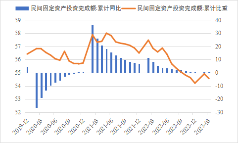 2023年一季度生產(chǎn)需求明顯改善,市場(chǎng)預(yù)期加快好轉(zhuǎn),經(jīng)濟(jì)企穩(wěn)勢(shì)頭開始顯現(xiàn)。固定資產(chǎn)投資穩(wěn)定增長(zhǎng)為一季度經(jīng)濟(jì)平穩(wěn)運(yùn)行提供了重要支撐,各地都將穩(wěn)投資作為重要工作,有效應(yīng)對(duì)外部不確定性因素沖擊。隨著供需循環(huán)進(jìn)一步暢通,疊加前期政策效應(yīng)等多方面積極因素,擴(kuò)大有效投資仍有潛力和空間。下階段,應(yīng)聚焦重點(diǎn)產(chǎn)業(yè)、重要產(chǎn)業(yè)鏈、民生領(lǐng)域等精準(zhǔn)發(fā)力,多渠道籌措項(xiàng)目建設(shè)資金,更好發(fā)揮投資對(duì)于調(diào)結(jié)構(gòu)、促轉(zhuǎn)型的帶動(dòng)作用,為經(jīng)濟(jì)高質(zhì)量發(fā)展打下堅(jiān)實(shí)基礎(chǔ)。 一、固定資產(chǎn)投資整體運(yùn)行情況 1.整體投資保持平穩(wěn)增長(zhǎng)態(tài)勢(shì) 2023年1-3月,我國(guó)固定資產(chǎn)投資(不含農(nóng)戶,下同)10782億元,同比增長(zhǎng)5.1%,較國(guó)內(nèi)生產(chǎn)總值增速高了0.6個(gè)百分點(diǎn),與2022年全年增速持平,固定資產(chǎn)投資增速仍保持高位。從投資構(gòu)成看,一季度建安工程、設(shè)備工器具購置、其他費(fèi)用分別增長(zhǎng)4.1%、4.2%、8.2%。建安工程、設(shè)備工器具購置保持較快增長(zhǎng),人工、材料、施工機(jī)具使用以及設(shè)備購置等費(fèi)用增速加快,反映了在穩(wěn)投資系列政策推動(dòng)下,新上項(xiàng)目較多、新上項(xiàng)目中設(shè)備購置量增多、企業(yè)更新改造力度加大。 圖1 全國(guó)固定資產(chǎn)投資增速(%) 數(shù)據(jù)來源:國(guó)家統(tǒng)計(jì)局 2.民間投資意愿和能力仍待恢復(fù) 2023年1-3月,民間固定資產(chǎn)投資為58532億元,同比增長(zhǎng)0.6%,較1-2月低了0.2個(gè)百分點(diǎn),低于投資整體增速4.5個(gè)百分點(diǎn),仍處于低位運(yùn)行狀態(tài)。從季度波動(dòng)看,民間固定資產(chǎn)投資的增速已由2022年第一季度的8.4%持續(xù)下滑,下滑幅度較大。民間固定資產(chǎn)投資占比進(jìn)一步萎縮,跌至2011年以來的次低點(diǎn),僅為54.56%。 圖2 民間投資增速及占比(%) 數(shù)據(jù)來源:國(guó)家統(tǒng)計(jì)局,Wind數(shù)據(jù)庫 近年來,受疫情反復(fù)、成本上升、內(nèi)需收縮等因素影響,民間投資動(dòng)力和能力普遍偏弱,民營(yíng)企業(yè)面臨較嚴(yán)重的需求收縮。2022年開始,國(guó)有及國(guó)有控股單位投資增速超過民間投資增速,且差距逐漸拉大。2023年1-3月,國(guó)有及國(guó)有控股單位同比增長(zhǎng)10%,較民間投資增速高了9.4個(gè)百分點(diǎn)。1-2月,內(nèi)資企業(yè)中的國(guó)有企業(yè)、集體企業(yè)和股份合作企業(yè)固定資產(chǎn)投資分別同比增長(zhǎng)17.8%、20.5%和17.1%。 圖3 民間投資、國(guó)有及國(guó)有控股單位投資增速(%) 數(shù)據(jù)來源:國(guó)家統(tǒng)計(jì)局,Wind數(shù)據(jù)庫 3.基建投資加力提效,制造業(yè)投資結(jié)構(gòu)持續(xù)優(yōu)化 2023年1-3月,制造業(yè)投資保持較快增長(zhǎng),基建投資增速有所提升,房地產(chǎn)投資增速仍為負(fù)值,但降幅明顯收窄?;A(chǔ)設(shè)施投資在增加政策性開發(fā)性金融工具額度、用好專項(xiàng)債等融資支持政策以及各地區(qū)各部門積極貫徹落實(shí)穩(wěn)增長(zhǎng)系列政策推動(dòng)下,效果逐步顯現(xiàn),一季度基礎(chǔ)設(shè)施投資同比增長(zhǎng)8.8%,高于全部投資5.7個(gè)百分點(diǎn),是大類投資中增長(zhǎng)最快的領(lǐng)域。基建投資呈現(xiàn)結(jié)構(gòu)性特征,資金投向更加聚焦。一季度水利管理業(yè)投資增長(zhǎng)10.3%,公共設(shè)施管理業(yè)投資增長(zhǎng)7.7%,道路運(yùn)輸業(yè)投資增長(zhǎng)8.5%,鐵路運(yùn)輸業(yè)投資增長(zhǎng)17.6%?;ǖ耐七M(jìn)速度與資金的到位情況呈強(qiáng)相關(guān)性,從政策支持領(lǐng)域看,資金重點(diǎn)流向了市政及產(chǎn)業(yè)園區(qū)基礎(chǔ)設(shè)施、社會(huì)事業(yè)、交通基礎(chǔ)設(shè)施、保障性安居工程、農(nóng)林水利、生態(tài)環(huán)保、倉儲(chǔ)物流基礎(chǔ)設(shè)施等領(lǐng)域,聚焦于基礎(chǔ)設(shè)施“補(bǔ)短板”以及新基建“提質(zhì)量”,確保了資金精準(zhǔn)灌溉。 表1 1-3月我國(guó)各行業(yè)固定資產(chǎn)投資情況 2023年一季度,國(guó)內(nèi)需求逐步擴(kuò)大,經(jīng)營(yíng)主體預(yù)期好轉(zhuǎn),制造業(yè)投資同比增長(zhǎng)7%,比整體投資高1.9個(gè)百分點(diǎn)。其中,高技術(shù)制造業(yè)投資同比增長(zhǎng)15.2%,對(duì)制造業(yè)投資拉動(dòng)作用明顯,表明制造業(yè)轉(zhuǎn)型升級(jí)態(tài)勢(shì)持續(xù)。制造業(yè)改造升級(jí)潛力巨大,高技術(shù)制造業(yè)投資明顯快于全部投資。3月,制造業(yè)采購經(jīng)理指數(shù)(PMI)為51.9%,比上月下降0.7個(gè)百分點(diǎn),連續(xù)三個(gè)月位于景氣區(qū)間。隨著國(guó)內(nèi)經(jīng)濟(jì)循環(huán)加快恢復(fù),制造業(yè)生產(chǎn)和市場(chǎng)需求穩(wěn)步回升,生產(chǎn)指數(shù)和新訂單指數(shù)分別為54.6%和53.6%,位于近期較高景氣水平,裝備制造業(yè)、高技術(shù)制造業(yè)PMI分別為53%、51.2%,制造業(yè)繼續(xù)保持?jǐn)U張態(tài)勢(shì)。從企業(yè)規(guī)??矗?、中、小型企業(yè)PMI分別為53.6%、