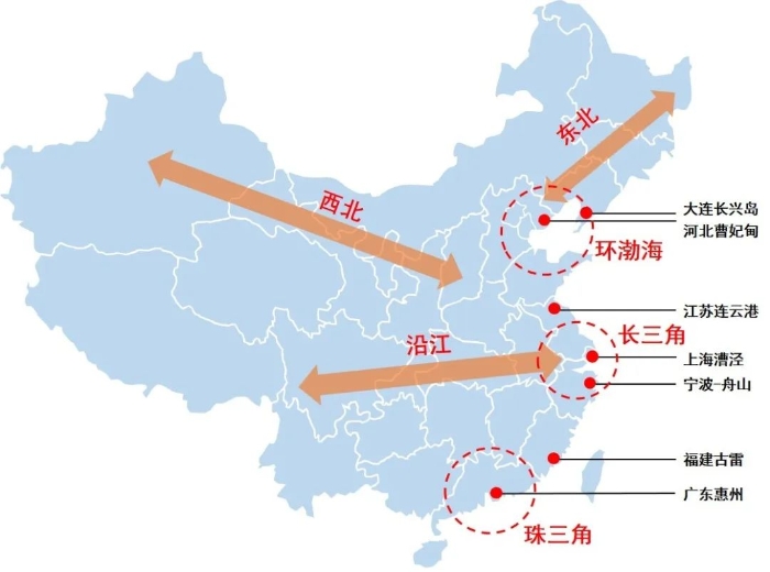 隨著國(guó)家布局大連長(zhǎng)興島、河北曹妃甸、江蘇連云港、上海漕涇、浙江寧波-舟山、福建古雷、廣東惠州等沿海七大石化基地建設(shè)的穩(wěn)步推進(jìn),國(guó)內(nèi)烯烴行業(yè)“基地化、園區(qū)化、一體化”發(fā)展的理念已經(jīng)成為共識(shí),以環(huán)渤海、長(zhǎng)三角、珠三角和東北、西北、沿江為特征的“三圈三帶”格局基本形成。特別是環(huán)渤海、長(zhǎng)三角、珠三角三大區(qū)域烯烴總能力已占全國(guó)的60%以上,并以龍頭項(xiàng)目帶動(dòng)下游產(chǎn)業(yè)集聚發(fā)展,形成了一批具有世界級(jí)規(guī)模和影響力的大型石化基地和園區(qū),如上海化學(xué)工業(yè)園區(qū)、連云港徐圩新區(qū)、寧波石化經(jīng)濟(jì)技術(shù)開發(fā)區(qū)、福建漳州古雷石化區(qū)等。