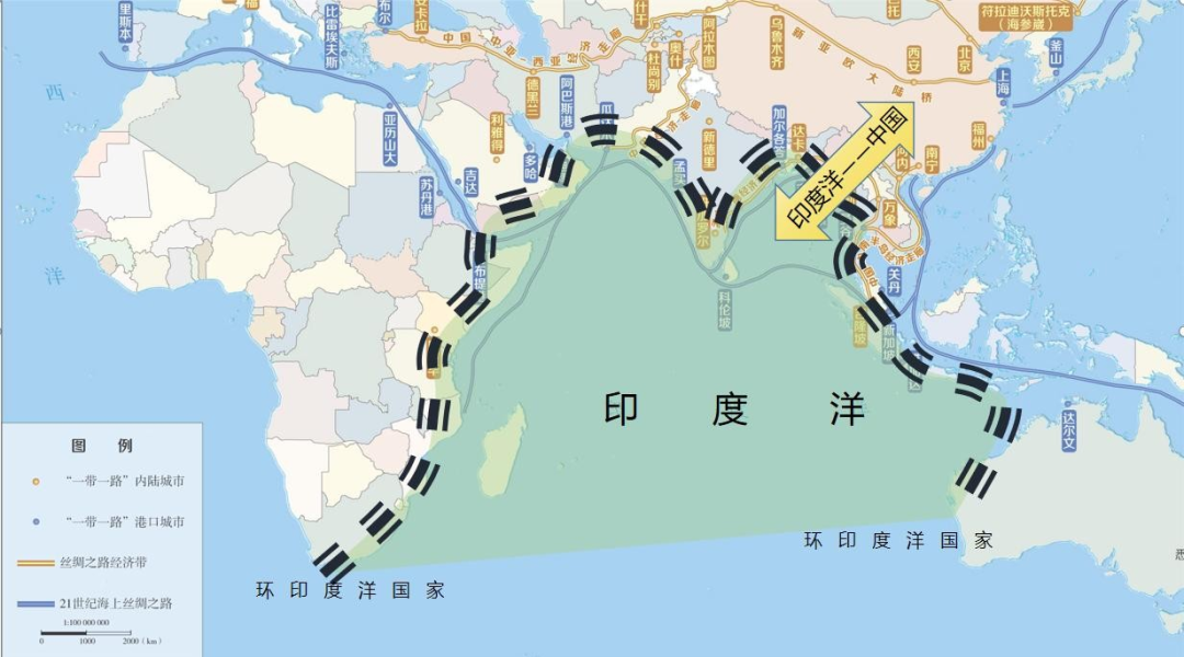 近年來,隨著國際局勢的變化,印度洋在全球戰(zhàn)略地位日趨上升。印度洋作為中國的西部鄰海,是中國通向南亞、中東、西亞和歐洲、非洲、大洋洲重要的通道,對中國的經(jīng)濟可持續(xù)發(fā)展至關(guān)重要。環(huán)印度洋地區(qū)地跨亞洲、非洲和大洋洲,包含南亞、東南亞、非洲和中東板塊,面積約 2772.3萬平方千米(占世界陸地總面積的20.6%),環(huán)印度洋地區(qū)合作聯(lián)盟共有23個成員國、10個對話伙伴國和2個觀察員國,人口近25.2億(約占世界總?cè)丝诘?5%)。該地區(qū)擁有豐富的自然和人力資源、廣闊的市場和便利的交通,發(fā)展?jié)摿薮蟆?/span>