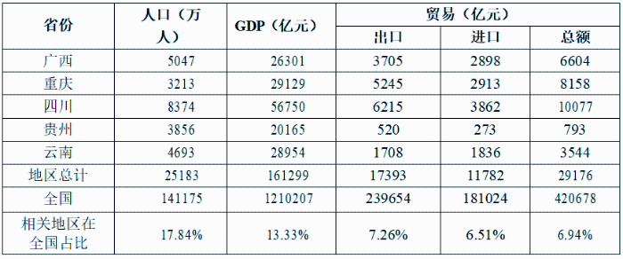 表2 西南國際大通道貫通相關(guān)地區(qū)2022年主要經(jīng)濟指標(biāo)