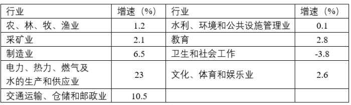 表1  1—12月我國各行業(yè)固定資產(chǎn)投資情況