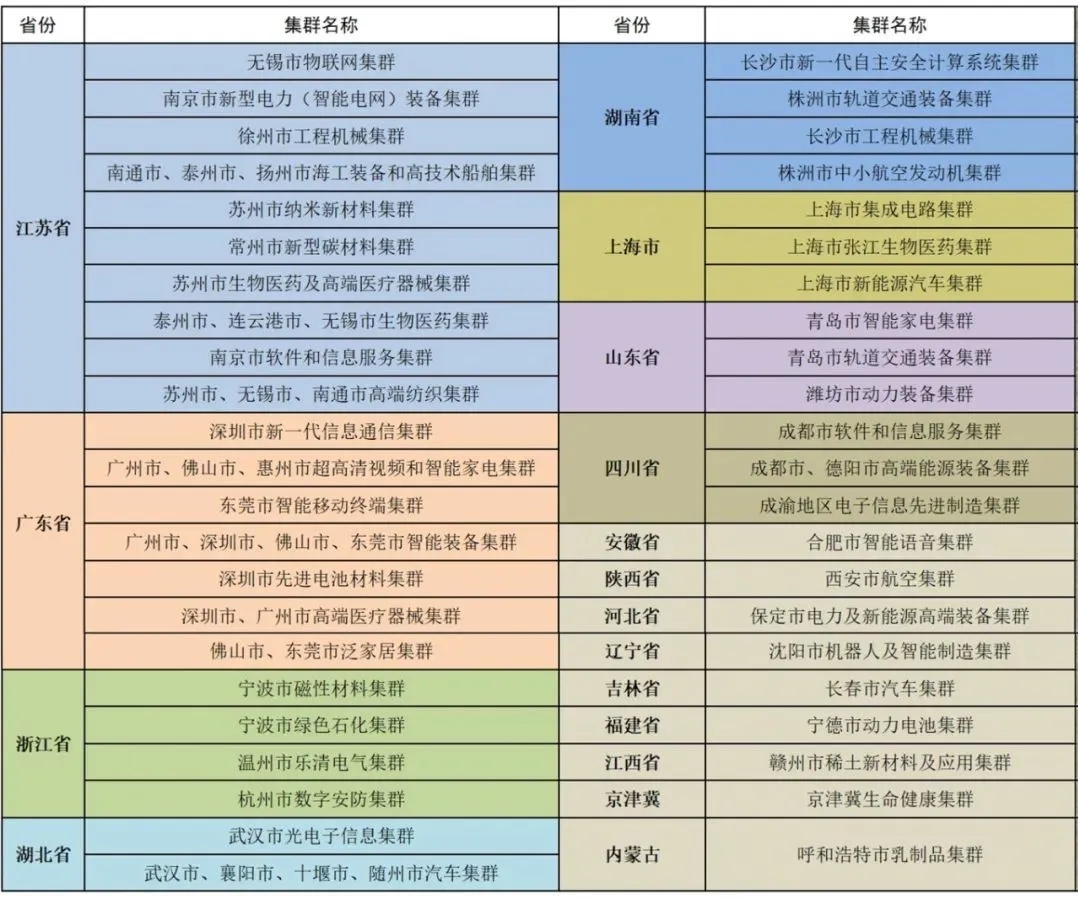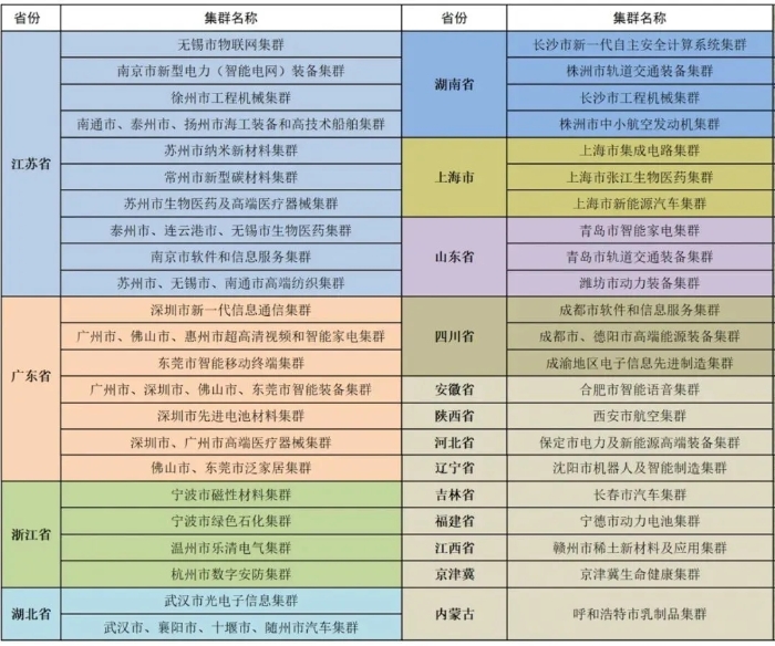 45個(gè)國家級(jí)先進(jìn)制造業(yè)集群統(tǒng)計(jì)