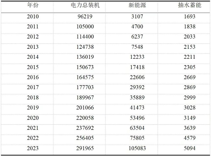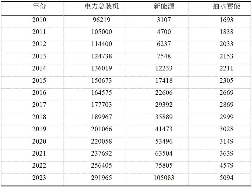 表1 我國電力、新能源和抽水蓄能裝機規(guī)模(單位:萬kW)