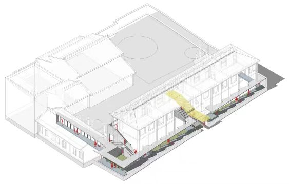 從歷史性到共時(shí)性: 歷史性建筑適應(yīng)性改造設(shè)計(jì)策略研究 ——以漳州古城比干廟為例 張健 摘要:以漳州古城重要的國(guó)家級(jí)文保建筑——比干廟的保護(hù)與利用為研究契機(jī),從基地特有的歷史文化和場(chǎng)所條件分析入手,通過漳州地方特有綠色植物“竹”的運(yùn)用,形塑與時(shí)俱進(jìn)的“共時(shí)性場(chǎng)境”,對(duì)歷史建筑進(jìn)行適應(yīng)性改造,并探討了其在豐富城市生活、傳承地方文化、激發(fā)社區(qū)商業(yè)活力等方面的巨大現(xiàn)實(shí)意義與可行性,為漳州古城未來的城市發(fā)展提供了新的視角與實(shí)踐參考。 關(guān)鍵詞:歷史建筑;比干廟;適應(yīng)性改造 漳州古城始建于唐代,至今已有1300余年的歷史。豐厚的歲月積淀、鮮明的歷史烙印,使古城格局、街巷肌理與建筑風(fēng)貌別具特色,加之原住民日常生活的點(diǎn)點(diǎn)滴滴,構(gòu)成了一個(gè)完整圖景,使其成為折射中國(guó)閩南文化最為典型的地方之一,具有重要的保護(hù)與研究?jī)r(jià)值。 漳州古城比干廟(以下簡(jiǎn)稱“比干廟”)位于漳州薌城區(qū)振成巷內(nèi),始建于宋代晚期,是漳州七縣林姓氏族合建的大宗祠,里面原供奉著中華林氏始祖比干,也是古時(shí)漳邑林氏宗族赴考往來生員的接待處。明代崇禎時(shí)期,在大學(xué)士林釬的提議下,進(jìn)行過補(bǔ)充建設(shè),購地建“群英堂”“世美堂”。1937年,日機(jī)轟炸漳州城,比干廟正廳被炸損一側(cè)屋角。“文革”前,比干廟尚基本保存完整,但“文革”期間遭受嚴(yán)重破壞,廟宇的前后進(jìn)和東西兩廡被拆除,改建為幼兒園和學(xué)校,僅中殿“忠孝堂”作為華南小學(xué)的辦公室和倉庫使用。 歷經(jīng)千年的比干廟,有著豐厚的考古研究及歷史文化價(jià)值。2006年7月,入選第六批全國(guó)重點(diǎn)文物保護(hù)單位。現(xiàn)僅存中進(jìn)四方殿和東廂與主體相連的回廊,具有宋元典型特征,其梁架斗拱等構(gòu)造體現(xiàn)了早期南北派建筑融合的特點(diǎn)。廟內(nèi)曾高掛明清狀元、探花牌匾,如今是弘揚(yáng)比干文化及林氏家族文化的重要場(chǎng)所,也是漳臺(tái)兩岸林氏共同的祖祠。漳州古城比干廟已被納入漳州古城“一中軸四板塊七街區(qū)”的歷史人文板塊,成為古城文化旅游的重要組成部分。 漳州古城改造上位規(guī)劃《漳州市唐宋子城(臺(tái)灣路-香港路)歷史文化街區(qū)保護(hù)規(guī)劃(2015-2030)》于2015年獲批,規(guī)劃涵蓋臺(tái)灣路、香港路等區(qū)域,有利推動(dòng)保護(hù)街區(qū)的歷史風(fēng)貌、文化遺產(chǎn)等,推動(dòng)古城的保護(hù)性開發(fā)。在古城改造的上位規(guī)劃中,提出了政府引導(dǎo)與古城居民自覺參與相結(jié)合的雙向發(fā)展模式。其中,通過社區(qū)營(yíng)造激勵(lì)古城的活態(tài)發(fā)展,鼓勵(lì)將現(xiàn)存的各類歷史建筑轉(zhuǎn)變?yōu)椤敖纸遣┪镳^”,在保留古城歷史記憶的同時(shí),融入新的生活體驗(yàn),成為漳州古城重要的適應(yīng)性改造策略。這就要求歷史建筑能不斷適應(yīng)新時(shí)期的功能要求,并為居民提供富有時(shí)代特點(diǎn)的人文感受。為了深入探究這一過程,本次研究將選取最具代表性的古城保護(hù)建筑——比干廟,進(jìn)行詳細(xì)策劃與設(shè)計(jì)研討,以期為未來古城發(fā)展提供有益的參考和啟示。 圖1 比干廟現(xiàn)狀 一、保護(hù)價(jià)值與定位 對(duì)于具有保護(hù)價(jià)值的歷史建筑,嘗試把保護(hù)內(nèi)容從單純地保留歷史場(chǎng)所,轉(zhuǎn)變成置入新的時(shí)代功能與活動(dòng),讓歷史建筑與時(shí)代同頻發(fā)展,把保護(hù)建筑從“歷史性場(chǎng)所”逐步轉(zhuǎn)換成“共時(shí)性場(chǎng)境”。 (一)保護(hù)價(jià)值 本次適應(yīng)性改造項(xiàng)目,選取的地塊為國(guó)家級(jí)文物保護(hù)單位比干廟所在的院落(圖2)。 院子為三進(jìn)帶東西兩廡式的平面布局,現(xiàn)僅存中進(jìn)四方殿和東廂與主體相連的回廊。院中的比干廟主殿具有濃郁閩南特色,始建年代不詳,總建筑面積合計(jì)271.71m2。是漳州歷代崇文重教的歷史見證,是福建省具有較高歷史、科學(xué)、藝術(shù)研究?jī)r(jià)值的古建筑文物之一。 建筑價(jià)值:比干廟不僅有豐厚的歷史文化底蘊(yùn),其建筑本身即是一座難得的有較高考古研究?jī)r(jià)值的古建文物。比干廟內(nèi)部采用木質(zhì)結(jié)構(gòu),保持著宋法式的營(yíng)造特征。其建筑風(fēng)格獨(dú)特,融合了閩南地區(qū)特有的元素,如飛檐翹角、精美石雕、彩繪木雕等,展現(xiàn)著中國(guó)古代建筑的精湛技藝。廟宇的主體建筑包括山門、前殿、正殿和后殿,每部分都有獨(dú)特的裝飾細(xì)節(jié),值得細(xì)細(xì)品味。 地段價(jià)值:院落靠近漳州古城西入口及游客中心,南臨洋老巷,北倚振成巷,是游客感受閩南傳統(tǒng)建筑風(fēng)情的開始,也是展示民俗特色的起點(diǎn)。 現(xiàn)存問題:現(xiàn)存建筑自1937年起多次遭受損壞,被列為國(guó)家級(jí)文物保護(hù)單位后,通過恢復(fù)手段修葺一新。但修繕后的院落,圍墻高聳,空間封閉,存在重保護(hù)、輕利用的現(xiàn)象,使建筑遺產(chǎn)陷入維修-空置-衰敗-再維修的“凍結(jié)式保護(hù)”怪圈。 應(yīng)對(duì)策略
