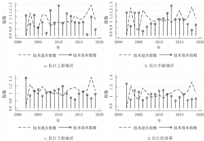 摘要:正確認識和研判長江經(jīng)濟帶科技創(chuàng)新效率的變化特征有助于更好地發(fā)揮科技創(chuàng)新對經(jīng)濟高質量發(fā)展的支撐作用?;?002-2019年長江經(jīng)濟帶沿線11省份的面板數(shù)據(jù),利用GS-SBM模型測度了長江經(jīng)濟帶的科技創(chuàng)新效率,分別使用Malmquist指數(shù)、Dagum基尼系數(shù)以及 Sigma收斂、Beta絕對(條件)收斂考察了長江經(jīng)濟帶科技創(chuàng)新效率的演變、空間差距和收斂性。研究發(fā)現(xiàn):長江經(jīng)濟帶及其上、中、下游地區(qū)科技創(chuàng)新效率整體上而言保持提升趨勢,且存在較大空間差距,超變密度對總體差距的貢獻最大;長江經(jīng)濟帶及其上、中、下游地區(qū)科技創(chuàng)新效率幾乎不存在Sigma收斂和Beta絕對(條件)收斂;長江經(jīng)濟帶發(fā)展戰(zhàn)略實施之后,科技創(chuàng)新效率提高得更加明顯,并從技術進步與技術效率的雙重驅動轉變?yōu)楦嗟匾揽考夹g進步,科技創(chuàng)新效率的擴散狀態(tài)更強?;诖?,研究認為要科學辯證地看待區(qū)域科技創(chuàng)新效率的差距,發(fā)揮長江經(jīng)濟帶發(fā)展戰(zhàn)略和科教興國戰(zhàn)略在提升和平衡科技創(chuàng)新效率中的積極作用。 關鍵詞:長江經(jīng)濟帶;科技創(chuàng)新效率;時空格局;收斂性 科技創(chuàng)新是長江經(jīng)濟帶建設現(xiàn)代經(jīng)濟體系、實現(xiàn)高質量發(fā)展的戰(zhàn)略支撐,是推動中國式現(xiàn)代化的第一力量。經(jīng)過多年的對外開放,長江經(jīng)濟帶已經(jīng)融入了全球分工體系,但是大量本土企業(yè)被鎖定在產(chǎn)業(yè)鏈或者產(chǎn)品價值鏈的中低端,必須依靠科技創(chuàng)新才能實現(xiàn)在全球價值鏈上的攀升。同時,雖然長江經(jīng)濟帶是我國重要的現(xiàn)代工業(yè)集聚地,工業(yè)基礎扎實、規(guī)模龐大,但是關鍵核心技術仍然缺乏,尤其是在以美國為首的西方國家對華遏制和挑戰(zhàn)的情況下,需要以科技創(chuàng)新來解決“卡脖子”問題,加快實現(xiàn)高水平科技自立自強。此外,為了加快經(jīng)濟增長,長江經(jīng)濟帶沿線多個省市推進工業(yè)化和城鎮(zhèn)化,忽略了人與自然的和諧共生,導致長江沿線部分地區(qū)環(huán)境污染問題突出,生態(tài)功能退化,碳排放持續(xù)增加。基于此,無論是貫徹落實習近平總書記“共抓大保護、不搞大開發(fā)”的指示精神,還是如期或者率先實現(xiàn)碳達峰碳中和目標,都要求長江經(jīng)濟帶沿線省市轉變發(fā)展模式,走生態(tài)優(yōu)先、綠色低碳發(fā)展之路,發(fā)揮科技創(chuàng)新在經(jīng)濟綠色轉型中的支撐作用。 由于科技創(chuàng)新本質上來講是一種知識生產(chǎn)過程,所以就存在科技創(chuàng)新成果的產(chǎn)出與科技創(chuàng)新資源和要素的投入比問題,即科技創(chuàng)新效率的高低,這種高低變化分別反映在時間和空間上差距:一是在某一區(qū)域內(nèi)科技創(chuàng)新資源和要素投入的持續(xù)增長,并沒有帶來相應的科技創(chuàng)新產(chǎn)出數(shù)量增長或者質量的提升;二是將同樣的科技創(chuàng)新資源和要素投入到不同區(qū)域,其科技創(chuàng)新產(chǎn)出數(shù)量或者質量顯著不同。這兩個維度分別刻畫了區(qū)域內(nèi)與區(qū)域間科技創(chuàng)新效率的差別,不僅影響了科技創(chuàng)新資源和要素的配置,而且也影響了科技創(chuàng)新對經(jīng)濟發(fā)展的貢獻程度,成為區(qū)域發(fā)展不平衡的底層因素之一,給區(qū)域協(xié)調發(fā)展帶來了較大的挑戰(zhàn)。除此之外,我國依然是世界上最大的發(fā)展中國家,科技創(chuàng)新資源較歐美發(fā)達國家而言則相對稀缺,這就需要通過提高科技創(chuàng)新效率來實現(xiàn)科技創(chuàng)新資源的最大化利用。 為了更加充分和有效地利用長江經(jīng)濟帶科技創(chuàng)新資源,促進長江經(jīng)濟帶經(jīng)濟高質量發(fā)展,就必須正視科技創(chuàng)新效率在時間和空間上的演變,科學認識科技創(chuàng)新效率向高水平收斂的機制,因此,不僅要考察長江經(jīng)濟帶科技創(chuàng)新效率的動態(tài)變化規(guī)律,還需要充分考慮科技創(chuàng)新效率的區(qū)域不平衡問題,即其上、中、下游地區(qū)之間以及各自內(nèi)部科技創(chuàng)新效率的差距變化。本文首先基于數(shù)據(jù)包絡方法測度了長江經(jīng)濟帶及其上、中、下游地區(qū)的科技創(chuàng)新效率,分解了導致科技創(chuàng)新效率變化的驅動因素,然后利用dagum基尼系數(shù)考察了長江經(jīng)濟帶及其上、中、下游地區(qū)的科技創(chuàng)新效率的空間差距及其形成來源,接著分別采用Sigma收斂和Bate收斂來檢驗了長江經(jīng)濟帶及其上、中、下游地區(qū)的科技創(chuàng)新效率的收斂性,最后給出了相關對策啟示。 一、文獻綜述 多年來,我國一直高度重視科技創(chuàng)新在國民經(jīng)濟發(fā)展中的重要作用,將推動科技創(chuàng)新做為黨治國理政的核心內(nèi)容之一。在中國共產(chǎn)黨第二十次全國代表大會報告提出“必須堅持科技是第一生產(chǎn)力、人才是第一資源、創(chuàng)新是第一動力”。鑒于此,有學者圍繞我國科技創(chuàng)新問題從多個角度展開了研究,取得了一批較高質量的成果。這里針對本文的研究目的,主要對科技創(chuàng)新效率方面的相關