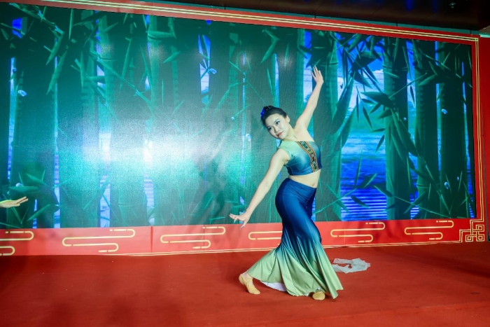 中咨工程公司帶來婀娜多姿的傣族舞《綠之夢》,四位來自中咨員工家庭的可愛小寶貝伴舞,并為現(xiàn)場觀眾送祝福。