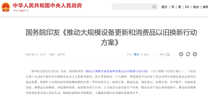 近日,國務(wù)院印發(fā)《推動大規(guī)模設(shè)備更新和消費品以舊換新行動方案》(以下簡稱《行動方案》),部署實施了設(shè)備更新、消費品以舊換新、回收循環(huán)利用、標準提升四大行動。其中,回收循環(huán)利用行動聚焦回收換新、二手流通、再生利用等環(huán)節(jié),堅持問題導向,精準施策,進一步暢通資源循環(huán)利用路徑,推動廢舊產(chǎn)品設(shè)備高效回收、二手商品交易規(guī)范便利、資源再生利用水平顯著提升,為經(jīng)濟社會高質(zhì)量發(fā)展提供強勁動力和堅實支撐。