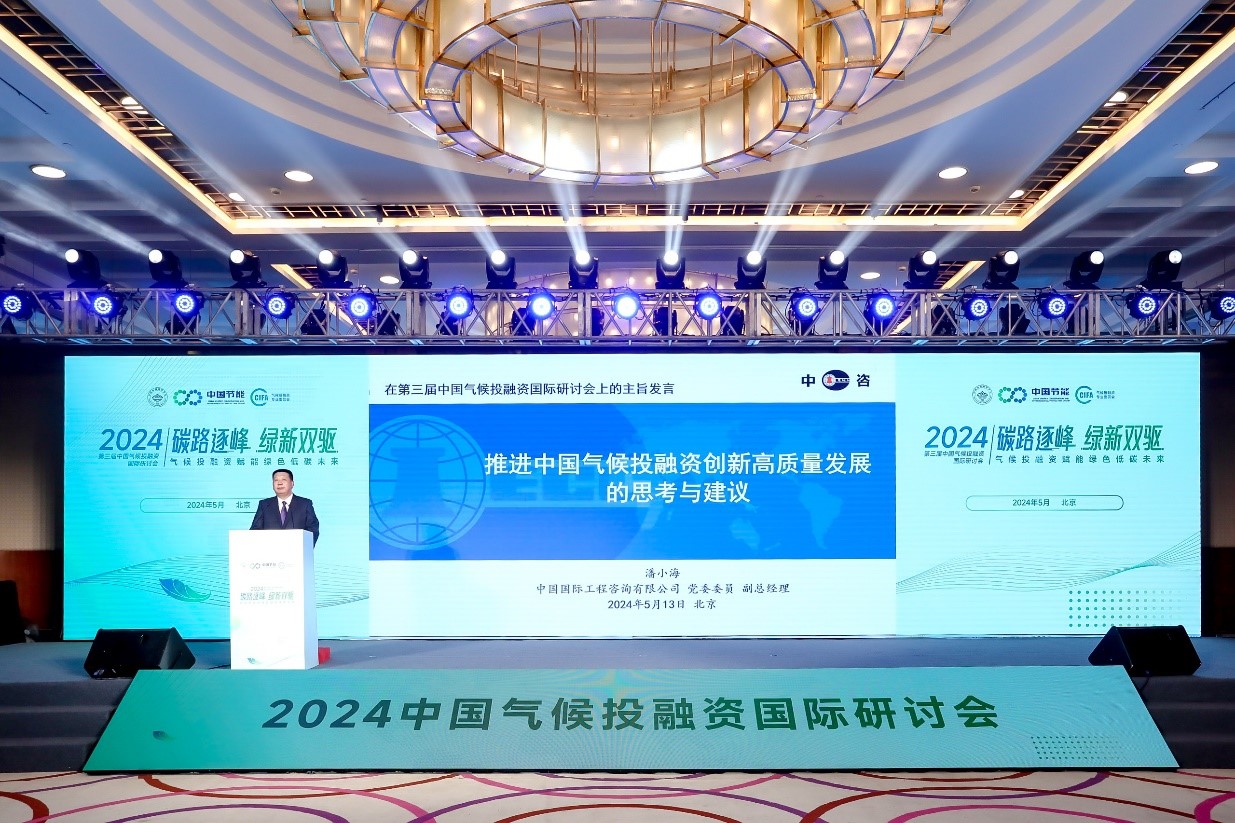 2024年5月13日,由中國(guó)環(huán)境科學(xué)學(xué)會(huì)和中國(guó)節(jié)能環(huán)保集團(tuán)有限公司主辦的“第三屆中國(guó)氣候投融資國(guó)際研討會(huì)”在京舉行,中咨公司黨委委員、副總經(jīng)理潘小海受邀出席開幕式主論壇,并作主旨發(fā)言。