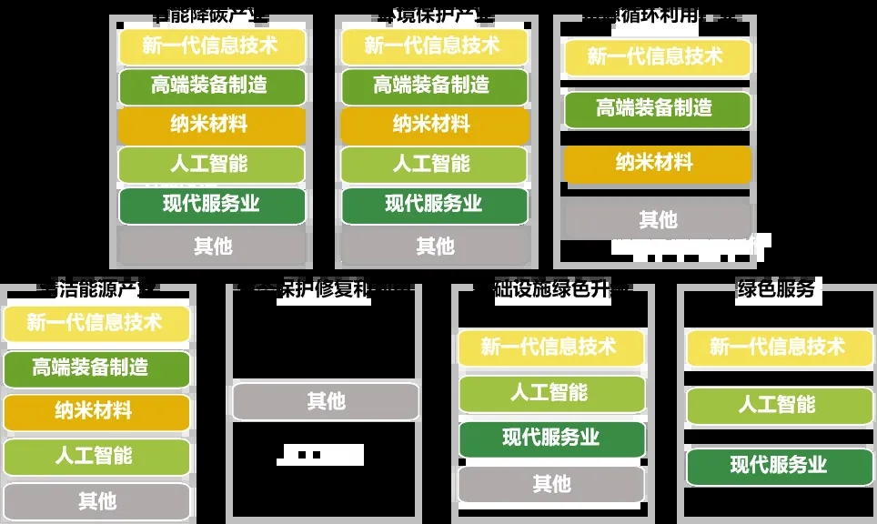 優(yōu)先發(fā)展綠色產(chǎn)業(yè),是否會打破蘇州工業(yè)園區(qū)原有產(chǎn)業(yè)發(fā)展體系格局?本研究認(rèn)為綠色產(chǎn)業(yè)不是一種產(chǎn)業(yè)門類,也不局限于某些國民經(jīng)濟行業(yè)分類,而是能夠與生態(tài)環(huán)境形成良好互動并可持續(xù)發(fā)展的所有業(yè)態(tài),其與蘇州工業(yè)園區(qū)2+3+1產(chǎn)業(yè)體系之間既不是包含從屬關(guān)系也不是并列關(guān)系,而是相互交叉關(guān)系,如節(jié)能降碳產(chǎn)業(yè)包含部分新一代信息技術(shù)、高端裝備制造、納米材料、人工智能、現(xiàn)代服務(wù)業(yè)以及其他產(chǎn)業(yè)。