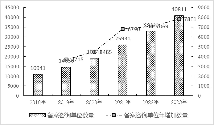 圖1  我國工程咨詢單位數(shù)量及其變動(dòng)趨勢