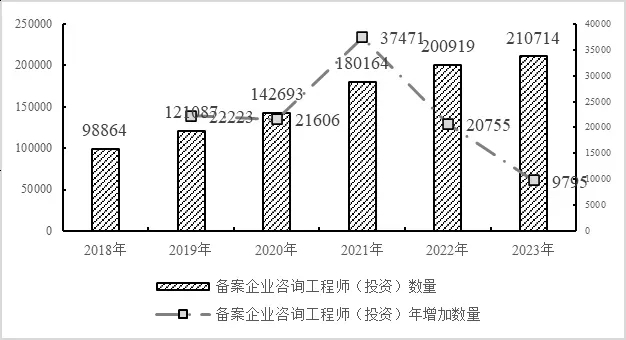我國每年約60萬億元的固定資產(chǎn)投資建設(shè),其項(xiàng)目投資方案都要進(jìn)行可行性研究和工程技術(shù)經(jīng)濟(jì)論證,以便為投資決策提供依據(jù)。截至2023年底,我國在國家發(fā)展改革委“中國投資項(xiàng)目在線審批監(jiān)管平臺(tái)”備案的工程咨詢機(jī)構(gòu)已有40811家,工程咨詢從業(yè)人員達(dá)到433萬人,其中擁有“咨詢工程師(投資)”專業(yè)水平資格的高層次專業(yè)人員超過21萬人,并有5萬人擁有咨詢工程師工程技術(shù)經(jīng)濟(jì)專業(yè)資質(zhì),這些機(jī)構(gòu)和人員對其技術(shù)經(jīng)濟(jì)專業(yè)具有很強(qiáng)的職業(yè)身份認(rèn)同。
