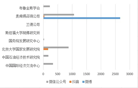 二是國內(nèi)智庫與麥肯錫等成熟商業(yè)化運(yùn)行的跨國企業(yè)智庫相比在國際上的傳播影響力均較弱,即使在國內(nèi)也無明顯優(yōu)勢。