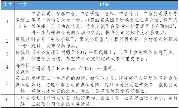 中咨公司總部及所屬企業(yè)共有線上線下主要宣傳媒體29個,包括門戶網(wǎng)站、微信公眾號、短視頻平臺、傳統(tǒng)紙媒、員工自媒體矩陣、融媒體生產(chǎn)平臺等。