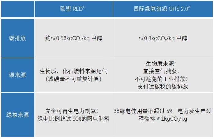 表1 國(guó)際綠色甲醇相關(guān)標(biāo)準(zhǔn)規(guī)定