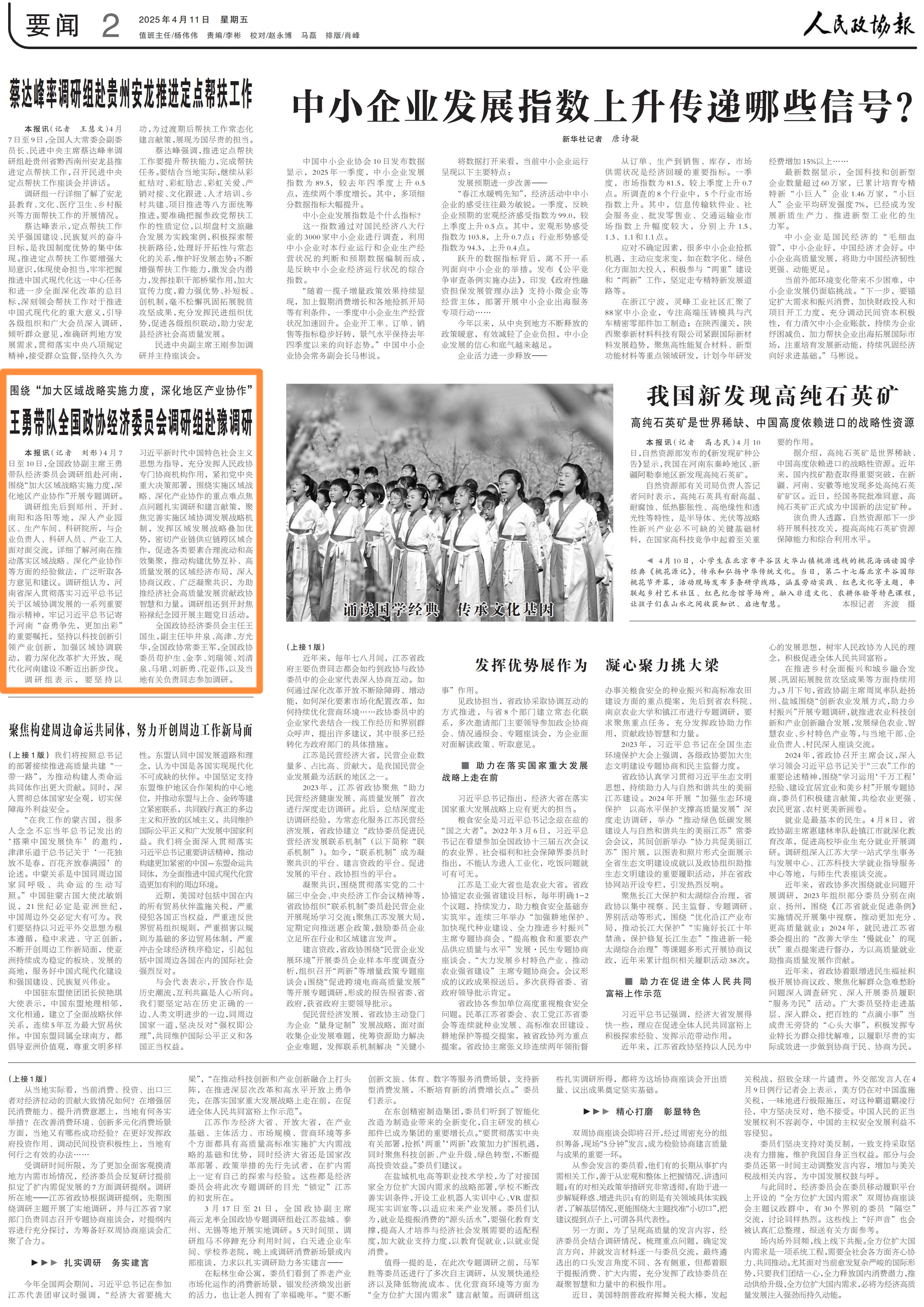 發(fā)布日期:2025-04-11 信息來源:《人民政協(xié)報》(2025年04月11日 第 2 版) 訪問次數(shù): 字號:[ ]