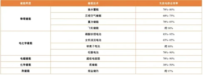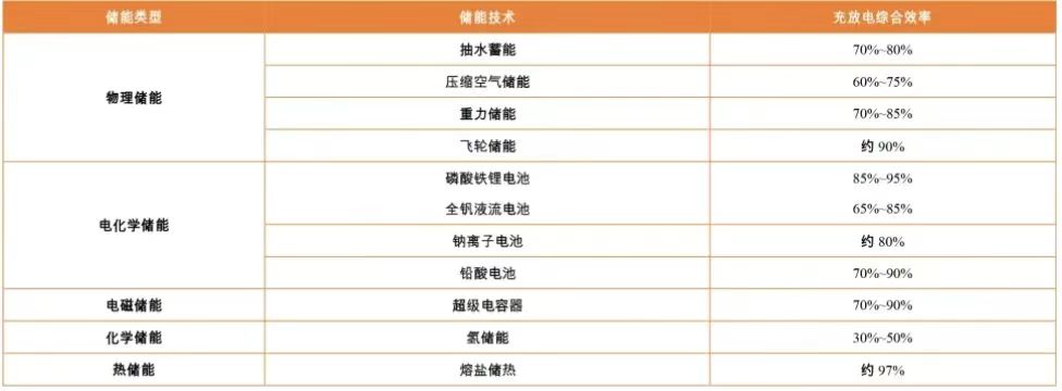 表2 儲(chǔ)能技術(shù)充放電綜合效率